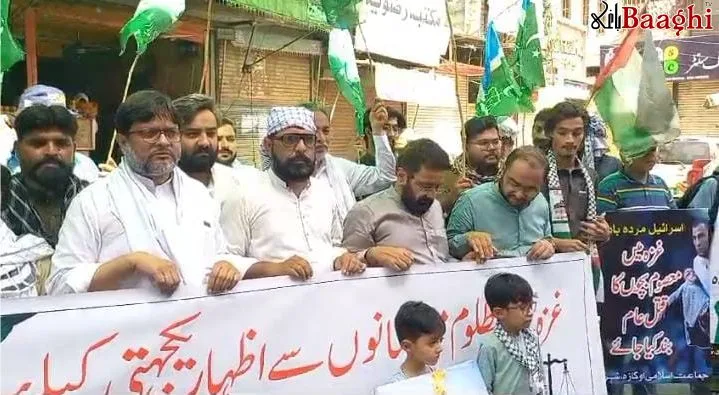 تفصیلات کے مطابق گول چوک میں کیے گئے احتجاجی مظاہرے میں جماعت اسلامی کے کارکنان نے بھرپور شرکت کی ،شرکاء نے کتبے اور پلے کارڈز اٹھا رکھے تھے جن پر فلسطین کے حق میں اور اسرائیلی جارحیت کے نعرے درج تھے