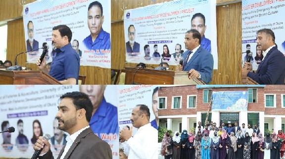 اوکاڑہ یونیورسٹی کے شعبہ فیشریز اینڈ ایکواکلچر اور فیشریز ڈویلپمنٹ بورڈ اسلام آباد کے اشتراک سے تربیتی ورکشاپ کا انعقاد کیا گیا جس میں طلباء کو جھینگا فارمنگ پر جامع تربیت فراہم کی گئی۔ یہ ورکشاپ پندرہ روز تک جاری رہے گی۔