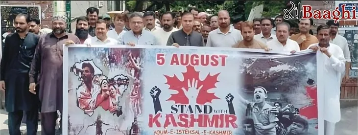 اوکاڑہ ،باغی ٹی وی( نامہ نگار ملک ظفر)یوم استحصال کشمیر کے موقع پر ڈی سی آفس اوکاڑہ میں ریلی کا انعقاد کیا گیا،کشمیریوں پر بھارت کے 5 اگست 2019ء کے ظالمانہ اقدامات کے خلاف یومِ سیاہ منایا گیا