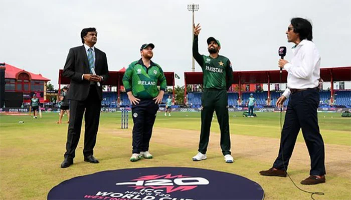آئی سی سی ٹی ٹوئنٹی ورلڈکپ کے 36 ویں میچ میں پاکستان نے آئرلینڈ کے خلاف ٹاس جیت کر فیلڈنگ کا فیصلہ کیا ہے۔فلوریڈا کے لارڈہل میں کھیلے جا رہے میچ میں بابر اعظم نے ٹاس جیت کر آئرلینڈ ٹیم کو بیٹنگ کی دعوت دی۔ پاکستان ٹیم کے کپتان بابر اعظم کا کہنا ہے کہ تین سے چار دن سے پچ کوور تھی، اس لیے بولنگ کا فیصلہ کیا۔پاکستان ٹیم میں نسیم شاہ کی جگہ عباس آفریدی کو شامل کیا گیا ہے، ٹیم کی قیادت بابراعظم کررہے ہیں، محمد رضوان، صائم ایوب اور فخر زمان پلیئنگ الیون میں شامل ہیں۔عثمان خان، شاداب خان، عماد وسیم اور شاہین آفریدی بھی ایکشن میں ہوں گے، جبکہ عباس آفریدی، حارث رؤف اور محمد عامر بھی پاکستان کی پلیئنگ الیون کا حصہ ہیں۔