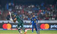 اس سے قبل ون ڈے ورلڈکپ کے آٹھویں میچ میں سری لنکا کے 345 رنز کے ہدف کے تعاقب میں پاکستان کو مشکلات کا سامنا ہکرنا پڑ رہا ہے کیونکہ اوپنر امام الحق کے بعد کپتان بابر اعظم بھی آؤٹ ہوگئے تھے اور پاکستان نے 8 اوورز میں 2 وکٹوں کے نقصان پر 37 رنز بنالیے تھے۔ اوپنر امام الحق 12 اور کپتان بابر اعظم 10 رنز پر پویلین لوٹ گئے تھے۔