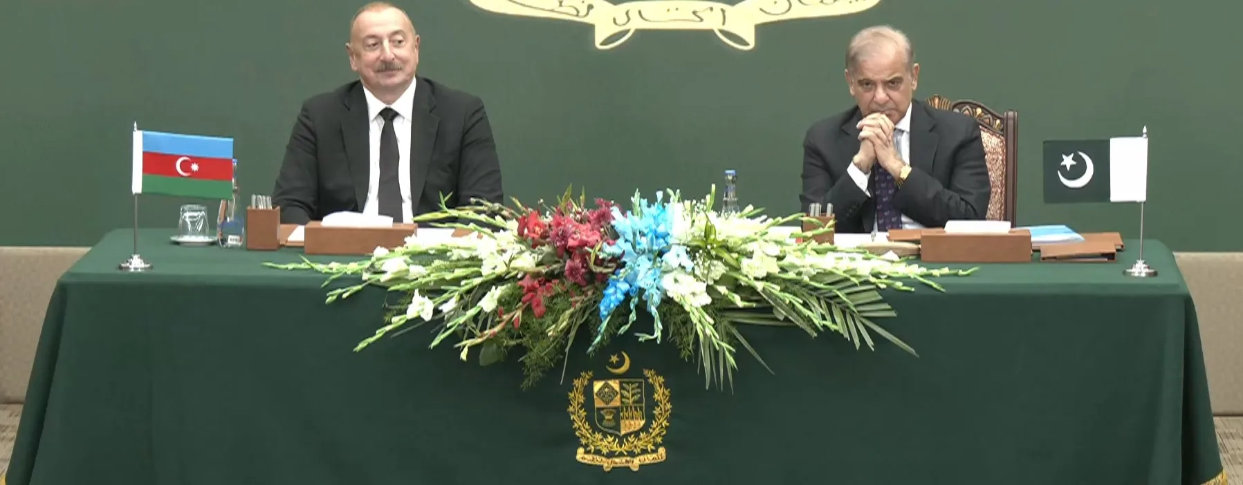 انہوں نے مزید کہا کہ آذربائیجان کا ہر مشکل وقت میں پاکستان نے ساتھ دیا ہے، پاکستان نے ہمیشہ آذربائیجان کے اصولی مؤقف کی حمایت کی ہے، پاکستان کے ساتھ تعاون کا سلسلہ جاری رکھیں گے۔صدرالہام علیوف نے مزید کہا کہ جموں و کشمیر کے اصولی مؤقف کی حمایت پاکستان کےعوام کے ساتھ ہماری محبت کا اظہارہے، افسوس ہے جموں و کشمیر سے متعلق سلامتی کونسل کی قراردادوں پرعملدرآمد نہیں ہورہا۔پاکستان اور آذربائیجان کے درمیان مختلف شعبوں میں تعاون کی مفاہمتی یادداشتوں پر دستخط کی تقریب ہوئی، دونوں ممالک کے درمیان قونصلر امور سے متعلق مفاہمتی یاد داشت پر دستخط کئے گئے، نائب وزیراعظم اسحاق ڈار اور آذربائیجان کے نائب وزیر خارجہ نے دستخط کیے۔