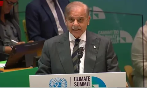 اقوام متحدہ کی جنرل اسمبلی اجلاس کے موقع پر موسمیاتی تبدیلیوں سے متعلق سمٹ سے خطاب میں وزیراعظم نے کہا کہ اس وقت میرے اہل وطن مون سون بارشوں سے شدید متاثر ہیں۔2022 کے تباہ کن سیلاب میں پاکستان کو 30 ارب ڈالر سے زائد کا نقصان اٹھانا پڑا۔عالمی سطح پر کاربن گیسوں کے اخراج میں پاکستان کا حصہ نہ ہونے کے برابر ہے، لیکن اس کے باوجود ہم عملی اقدامات کر رہے ہیں۔
