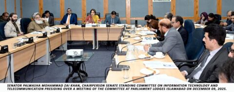سینیٹ کی قائمہ کمیٹی برائے انفارمیشن ٹیکنالوجی و ٹیلی کمیونی کیشن کا اجلاس پارلیمنٹ لاجز، اسلام آباد میں منعقد ہوا۔ اجلاس کا آغاز تلاوتِ کلام پاک سے ہوا اور اس کی صدارت سینیٹر پلوشہ محمد زئی خان نے کی۔ اجلاس میں سینیٹر ڈاکٹر افنان اللہ خان، سینیٹر سعدیہ عباسی اور سینیٹر عطا الرحمٰن نے شرکت کی۔