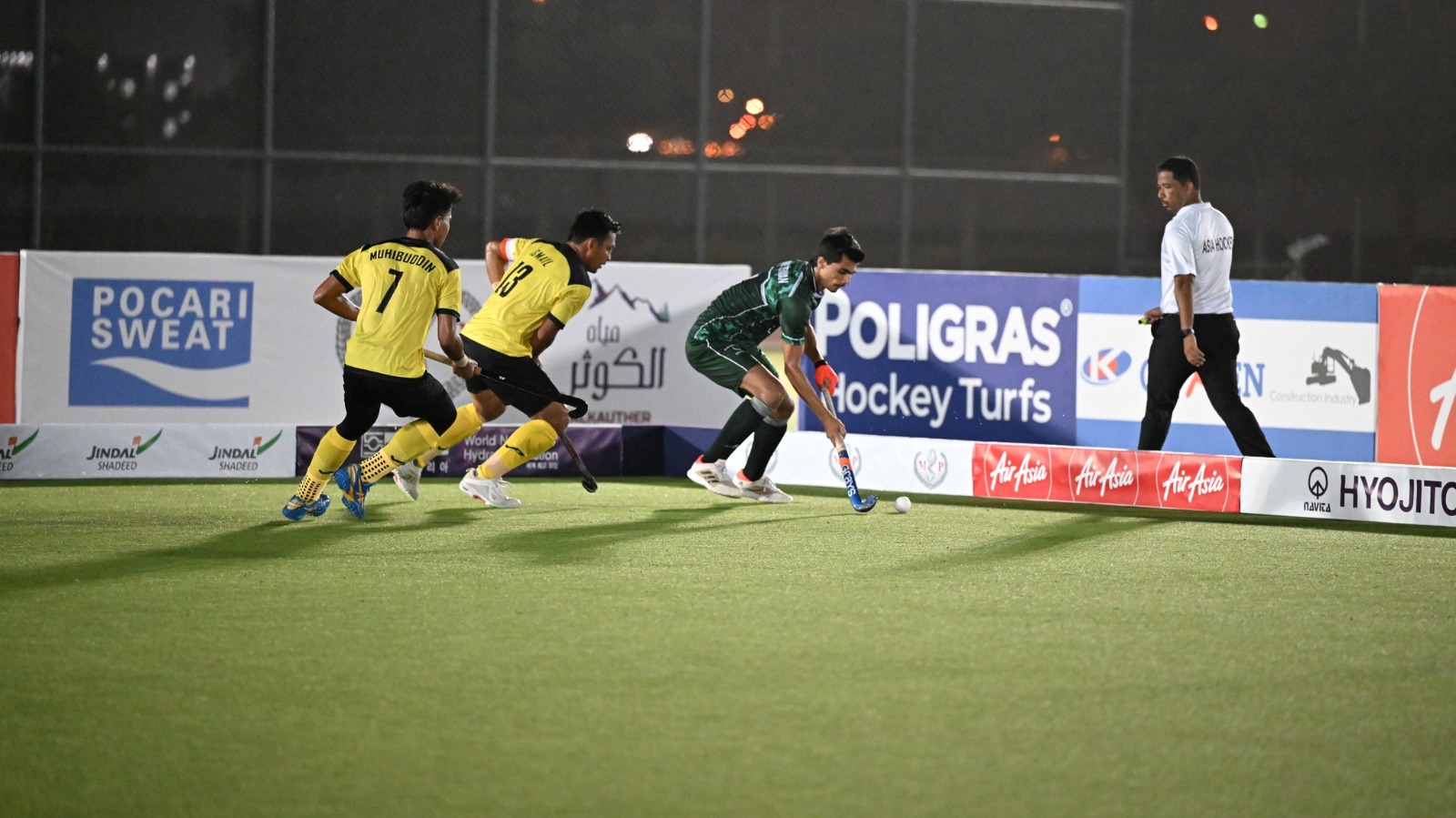 عمان کے شہر صلالہ میں جاری فائیو سائیڈ ایشیاء ہاکی کپ میں پاکستان اور ملائشیا کے مابین میچ ایک سنسنی خیز مقابلہ کے بعد ڈراء ہوگیا، پاکستان نے اپنے پانچویں میچ کو ملائشیا کے مدمقابل 5-5 گول سے ڈراء کیا۔ پاکستان نے پوائنٹس ٹیبل پر 13 پوائینٹس کے ساتھ پہلی پوزیشن پر جگہ بنالی۔ انڈیا 12 پوائینٹس کے ساتھ دوسری اور ملائشیا 10 پوائینٹس کے ساتھ پوائنٹس ٹیبل پر تیسری پوزیشن پر موجود ہے۔