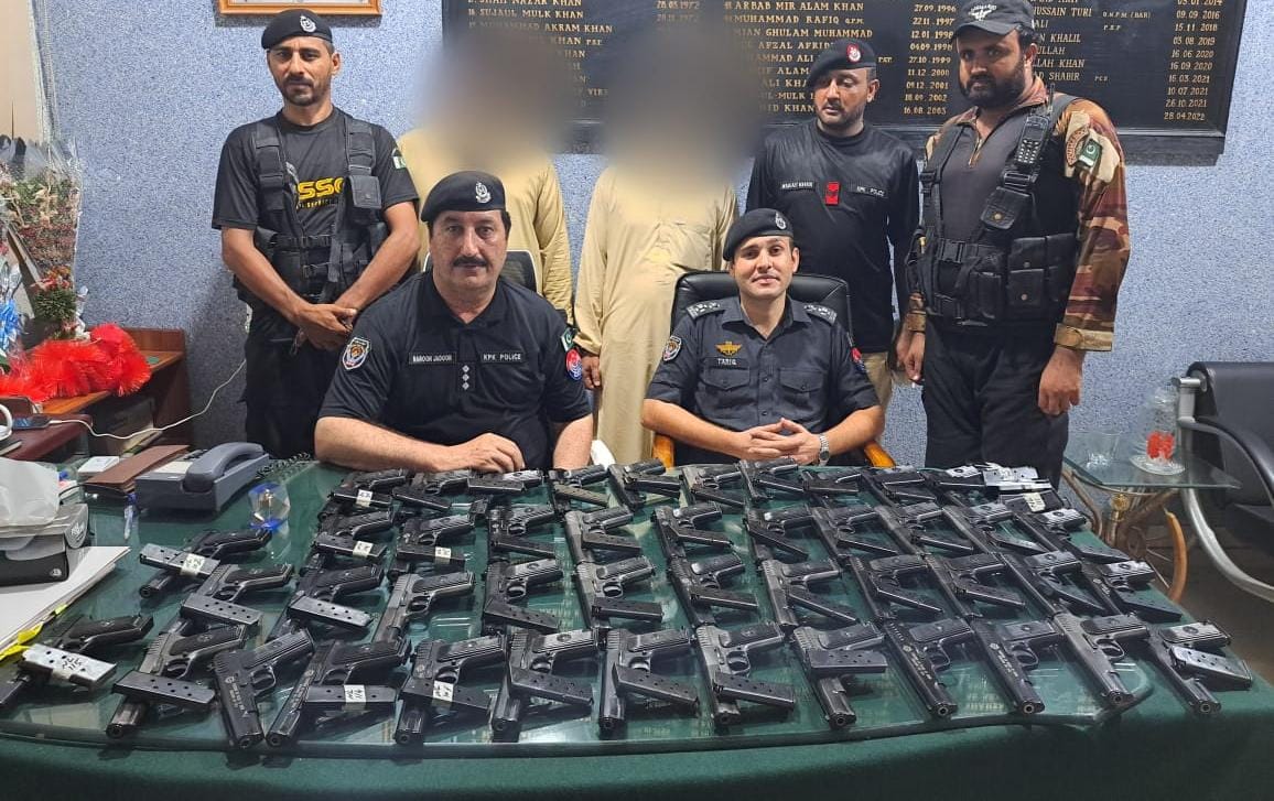 پشاور، پولیس کی اہم کارروائی، بھاری تعداد میں اسلحہ سمگل کرنے کوشش ناکام، دو ملزمان گرفتار