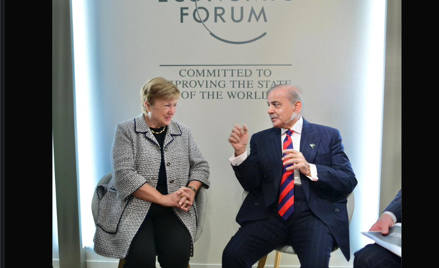 وزیراعظم محمد شہبازشریف نے عالمی اقتصادی فورم کے 56ویں سالانہ اجلاس کے موقع پر آج سوئٹزرلینڈ کے شہر ڈیووس میں انٹرنیشنل مانیٹری فنڈ کی منیجنگ ڈائریکٹر کرسٹالینا جارجیوا سے ملاقات کی۔