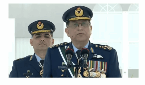 پی اے ایف اکیڈمی رسالپور میں پاسنگ آؤٹ پریڈ سے خطاب کرتے ہوئے سربراہ پاک فضائیہ ائیر چیف مارشل ظہیر احمد بابر سدھو کا کہنا تھا معرکہ حق میں کامیابی پاکستان ائیر فورس کی بہترین کاکردگی کا مظہر ہے،جب 6 اور 7 مئی کی رات پاکستان کی خود مختاری کو چیلنج کیا گیا تو پاکستان ائیر فورس نے دشمن کو بھرپور جواب دیتے ہوئے رافیل سمیت اس کے جدید ترین لڑاکا طیارے گرائے، 10 مئی کو ہم نے دشمن کے ڈیفنس سسٹم کو کامیابی سے نشانہ بنایا، آپریشن بنیان مرصوص میں پاکستان نے سائبر وار فیئر میں اپنی برتری ثابت کی،پاکستان کی سالمیت پر کبھی بھی آنچ نہیں آنے دیں گے، رافیل طیاروں کی صلاحیت پاک فضائیہ کے سامنے صفر ثابت ہوئی، دشمن کی ہر حرکت کو پاک فضائیہ نے لمحوں میں مانیٹر کیا، ہمارے ایکشن اور آپریشن لمحوں میں کارگر ثابت ہوتے ہیں، آج کی جدیددنیا میں پاک فضائیہ پیشہ وارانہ صلاحیتوں سے لیس ہے۔