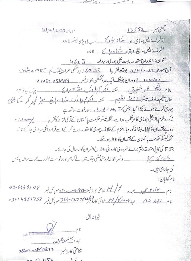 لیسکو حکام نے شاد باغ سب ڈویژن کے علاقے میں کارروائی کی ہے
