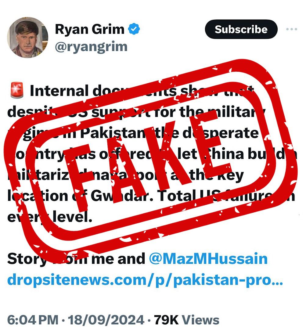 پی ٹی آئی کے وفادار اور آپریشن گولڈ اسمتھ کے سرغنہ امریکہ میں، رائن گریم اور مرتضیٰ حسین ایک بار پھر جھوٹی پروپیگنڈا پر مبنی تحریر کے ذریعے بے نقاب ہو گئے۔ انہوں نے حال ہی میں ایک نیا جعلی ویب پیج "ڈراپ سائٹ” کے نام سے بنایا ہے، جس پر مضحکہ خیز جھوٹ پھیلایا گیا ہے۔ یہ دونوں اپنے پرانے پلیٹ فارم "انٹرسیپٹ” سے نکالے جانے کے بعد اس نئے پلیٹ فارم پر جھوٹی خبریں پھیلا رہے ہیں۔