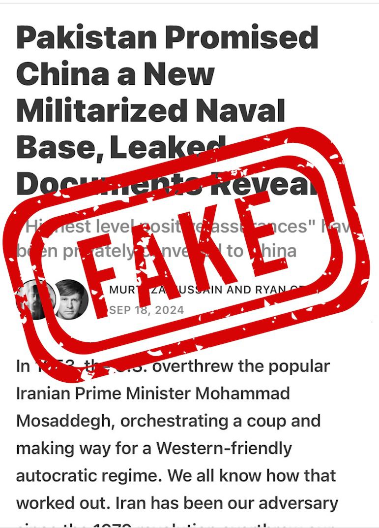 یہ دونوں پروپیگنڈا نگار، جن کا تعلق پی ٹی آئی اور گولڈ اسمتھ سے ہے، کئی بار اپنی بے بنیاد اور گمراہ کن خبروں کے ذریعے بے نقاب ہو چکے ہیں۔ ان کی حالیہ تحریر میں بھی، جو کہ اوپن سورس انفارمیشن پر مبنی ہے، عوام کو گمراہ کرنے کی ناکام کوشش کی گئی ہے۔ یہ حقائق کو اس انداز میں توڑ مروڑ کر پیش کر رہے ہیں جو عوام کے سامنے پہلے ہی موجود ہیں اور سرکاری پریس ریلیزز، آف دی ریکارڈ گفتگو اور مختلف ذرائع کی جانب سے وضاحت کے ساتھ بیان کیے جا چکے ہیں۔