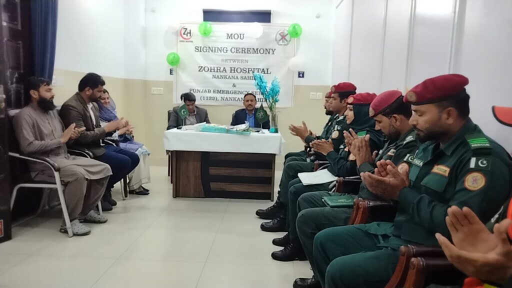 ننکانہ صاحب،باغی ٹی وی (نامہ نگار احسان اللہ ایاز) پنجاب ایمرجنسی سروس ریسکیو 1122 اور زہرہ ہسپتال ننکانہ صاحب نے ایک اہم مفاہمتی یادداشت پر دستخط کیے ہیں، جس کے تحت طبی امداد اور تربیت میں تعاون کو فروغ دیا جائے گا۔