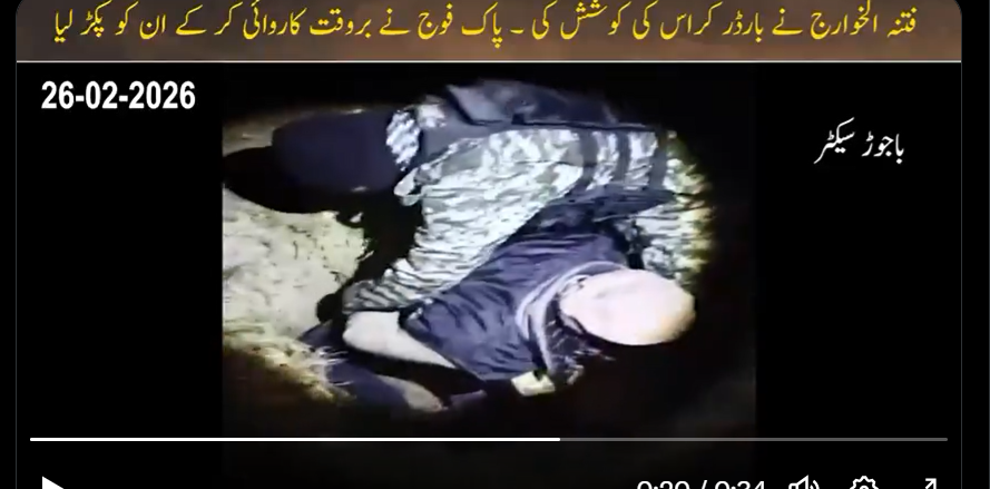 سیکیورٹی فورسز نے بارڈر کراس کرنے والے فتنہ الخوارج کے دہشتگرد کوزندہ پکڑلیا، سیکیورٹی ذرائع کے مطابق پکڑے جانے والے فتنہ الخوارج کے دہشتگرد نے اپنا نام عبداللہ بتایا ہے،سیکیورٹی فورسز کسی بھی جارحیت اور دراندازی کیخلاف مکمل الرٹ ہیں،