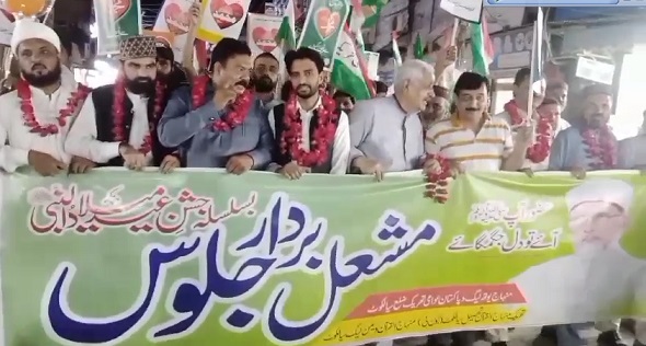 سیالکوٹ،باغی ٹی وی (سٹی رپورٹرشاہدریاض) جشن آمدِ مصطفیٰﷺکی خوشی میں جلوس منہاج یوتھ لیگ و عوامی تحریک نے انعقاد کیا