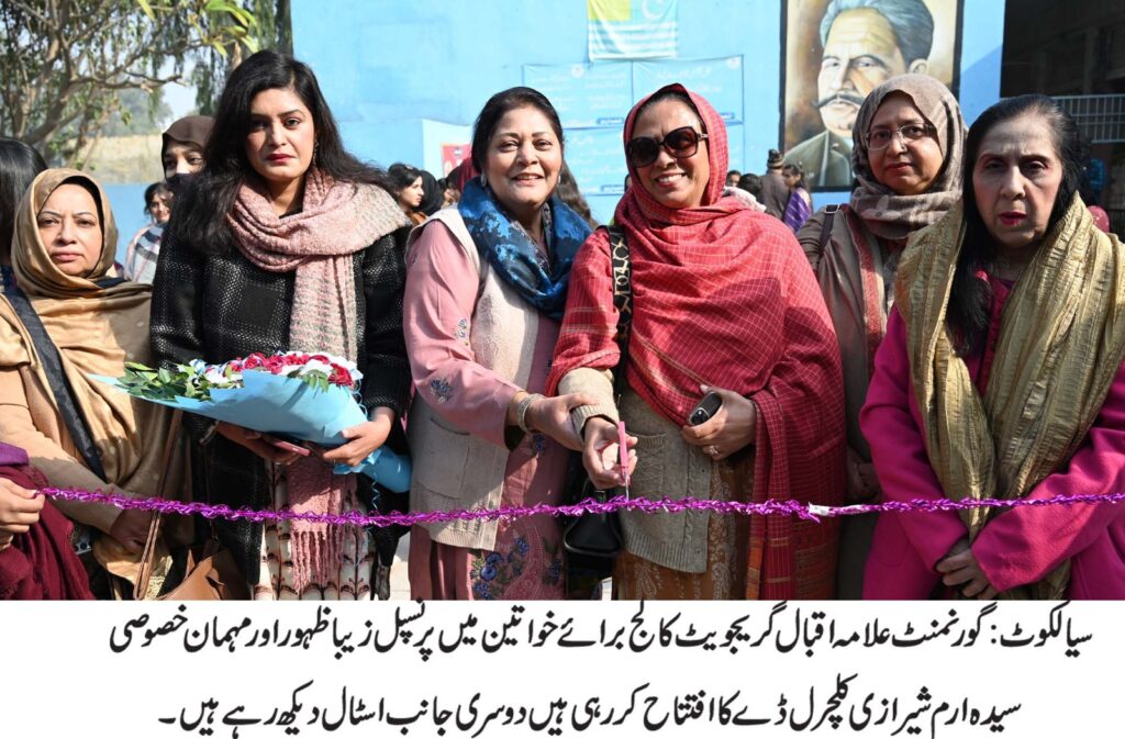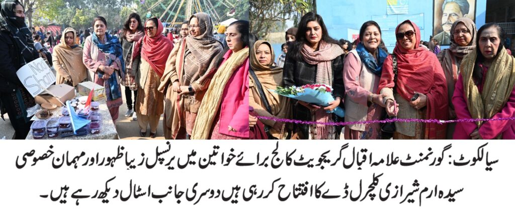 سیالکوٹ ،باغی ٹی وی( بیورو چیف شاہد ریاض سے) گورنمنٹ علامہ اقبال گریجویٹ کالج برائے خواتین سیالکوٹ میں کلچرل ڈے کا شاندار انعقاد کیا گیا۔ اس موقع پر پرنسپل زیبا ظہور نے اپنے استقبالیہ خطاب میں کالج میں تشریف لانے والے معزز مہمانوں کو خوش آمدید کہا اور ان کی آمد کو طالبات اور اساتذہ کی حوصلہ افزائی قرار دیا۔