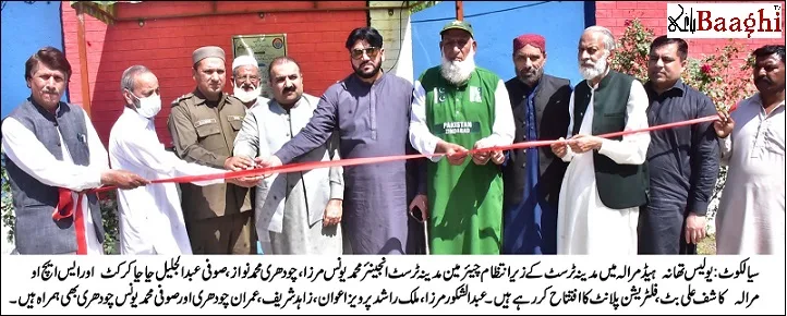 انہوں نے مزید کہا کہ مدینہ ٹرسٹ نے منظور احمد مرزا کے صاحب زادے احسان مرزا کی مدد سے ڈھلے والی میں پہلا فلٹریشن پلانٹ لگایا جو کامیابی سے چل رہا ہے اب ایس ایچ اومرا لہ کاشف علی بٹ کی درخواست پر پولیس تھانہ ہیڈ مرالہ میں پلانٹ کا افتتاح کر کے انہیں دلی خوشی ہو رہی ہے۔