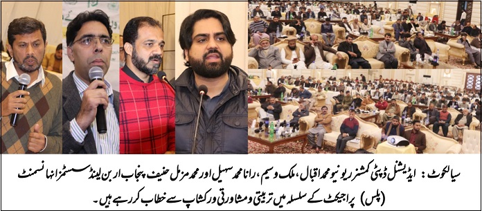 ان خیالات کا اظہار انہوں نے آج "پنجاب اربن لینڈ سسٹمز انہانسمنٹ (پلس)” پراجیکٹ کے سلسلہ میں ریونیو، بلدیات اور زراعت افسران اور ملازمین کے مشاورتی و تربیتی سیمینار سے خطاب کرتے ہوئے کیا۔ پلس پراجیکٹ کے سوشل سیف گارڈ اسپیشلسٹ وسیم ملک، جی اے ریونیو عبدالحئی بھٹی، انوائرمنٹ اسپیشلسٹ رانا محمد سہیل، جی آئی ایس اسپیشلسٹ محمد مزمل حنیف، انچارج پلس کیوان حسن، تحصیلدار سیالکوٹ سلیم راں، پسرور عثمان غنی، اور ضلعی انچارج پلس کے علاؤہ میونسپل کارپوریشن/کمیٹیز ڈسکہ، پسرور، سمبڑیال کے سی سی اوز اور محکمہ زراعت کے مقامی حکام، گرداور، قانوگو ، پٹواریوں نے شرکت کی۔