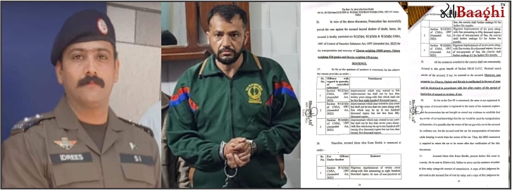 تفصیلات کے مطابق سب انسپکٹر مرزا ادریس کی قیادت میں کارروائی کے دوران اشرت عرف گونا کے قبضے سے چرس، افیون، پاؤڈر اور دیگر منشیات برآمد کی گئی تھیں۔ سب انسپکٹر نے کیس میں تمام ثبوت اور گواہان عدالت کے سامنے پیش کرتے ہوئے ملزم کو سزا دلوانے میں اہم کردار ادا کیا۔