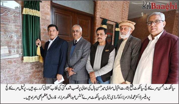 امریکہ میں مقیم ممتاز پاکستانی بزنس مین شیخ بشارت اقبال نے سیالکوٹ کے گورنمنٹ مرے کالج میں تاریخی مولوی میر حسن ہال کی بحالی کا کام مکمل کرکے اسے دوبارہ کھول دیا۔ یہ ہال مفکر پاکستان حضرت علامہ اقبالؒ کے استاد محترم مولوی میر حسن سے منسوب ہے اور اس کی بحالی پر 35 ملین روپے خرچ کیے گئے ہیں۔
