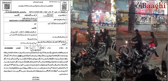 باغی ٹی وی نے واقعے کی سی سی ٹی وی فوٹیج حاصل کر لی ہے، جس میں ڈاکوؤں کو شہری سے موٹرسائیکل چھینتے اور ہوائی فائرنگ کرتے ہوئے دیکھا جا سکتا ہے۔ واردات پیدل ڈاکوؤں نے انجام دی اور موقع سے فرار ہونے میں کامیاب ہو گئے۔