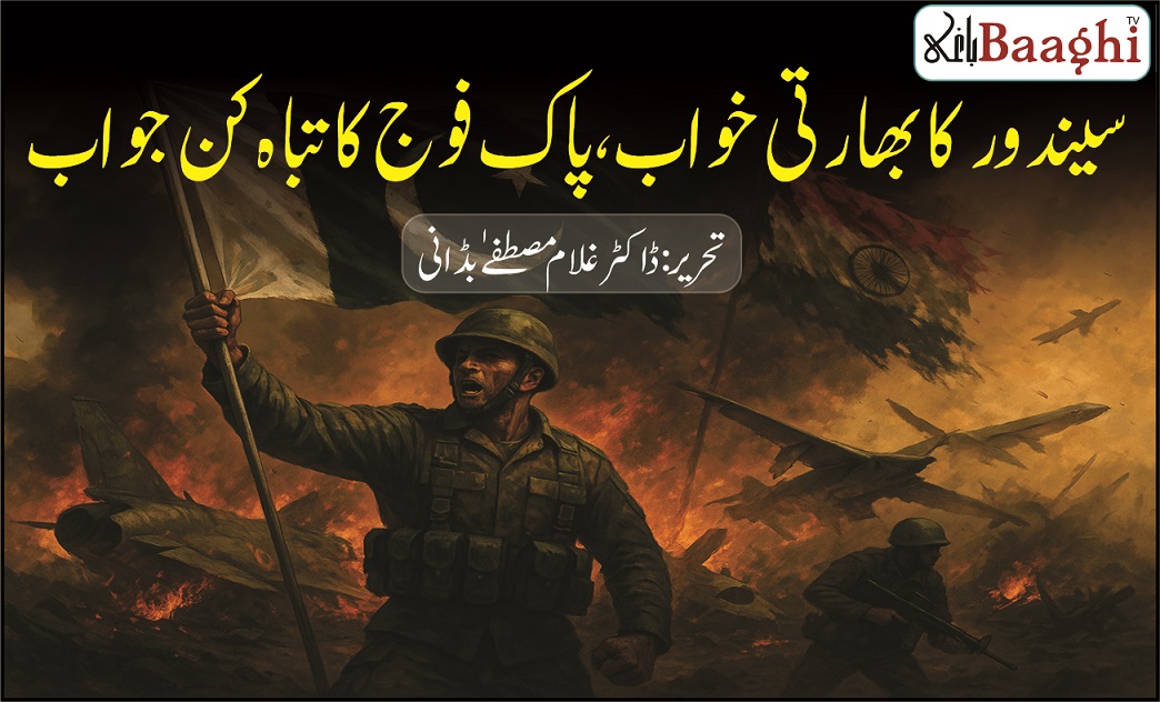 بھارت نے رات کی تاریکی میں جس بزدلی سے پاکستان پر حملے کا آغاز کیا، جسے اس بزدل نے اپنے روایتی ہندوانہ رجحان کے تحت "آپریشن سیندور” کا نام دیا۔ سیندور جو ہندو مذہب میں شادی شدہ عورت کی مانگ کا مقدس نشان سمجھا جاتا ہے، اس کی علامتی اہمیت کو بھارتی میڈیا نے حملے کے نام کے ساتھ جوڑ کر پاکستان کو بدنام کرنے اور اپنا سیاسی بیانیہ مضبوط کرنے کی ناکام کوشش کی۔ لیکن دشمن کو کیا خبر تھی کہ وہ جس علامت کو خوش بختی سمجھ رہا تھا، وہی نشان اس کے اپنے ماتھے پر خون کی لکیر بن کر ابھرے گا۔ پاک فوج نے نہ صرف اس جارحیت کو ناکام بنایا بلکہ بھارت کی سرزمین پر ایسی تباہ کن جوابی کارروائی کی کہ دشمن کے خواب چکناچور ہو گئے۔