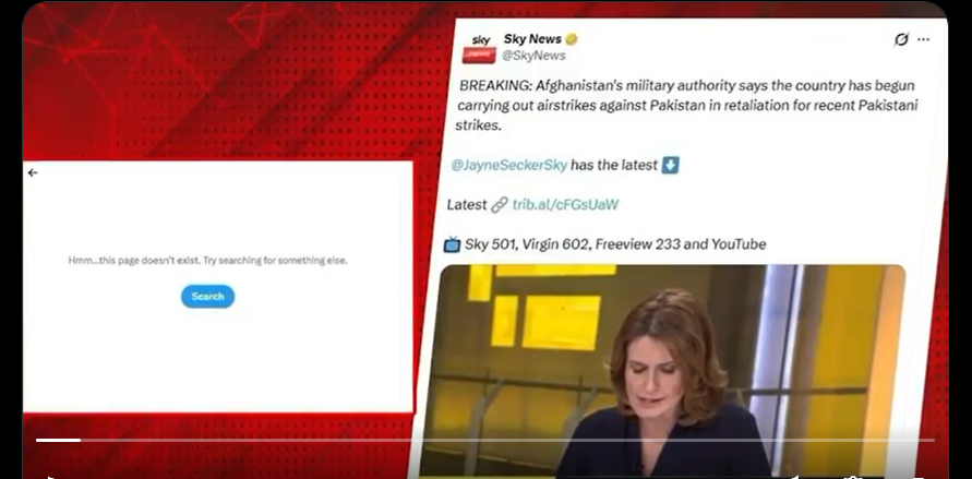 پاکستانی سوشل میڈیا کے شدید دباو کے بعد سکائی نیوز اپنی ایکس پوسٹ ڈیلیٹ کرنے پر مجبورہو گیا،سکائی نیوز نے افغانستان ائیر فورس کےذریعے پاکستان پر حملے کا جھوٹا دعویٰ کیا تھا، افغانستان ایئرفورس کا وجود ہی نہیں، اسکائی نیوز کی سوشل میڈیا پوسٹ پر ہزاروں پاکستانیوں نے ردعمل دیا، سکائی نیوز اس سے قبل بھی پاکستان اور افواج مخالف پروپیگنڈا میں ملوث ہونے کی وجہ سے بے نقاب ہوچکا ہے، سکائی نیوز بالعموم اور انکی افغانی نژاد اینکر یلدہ حکیم عرصہ دراز سے پاکستان مخالف پروپیگنڈا میں ملوث ہے، سکائی نیوز کی غیر معیاری صحافت پر سوشل میڈیا پر سوالات اٹھنے لگے ہیں