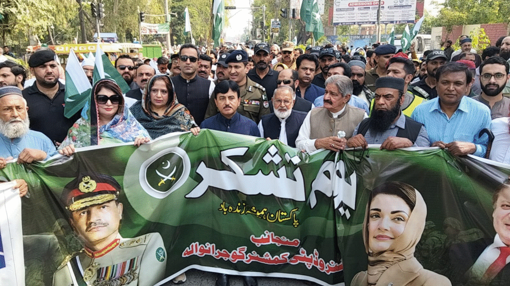 (باغی ٹی وی رپورٹس)آج 16 مئی کو ملک بھر کی طرح گوجرانوالہ، سیالکوٹ، ڈیرہ غازی خان اور ننکانہ صاحب میں بھی "یوم تشکر” قومی جذبے اور فخر کے ساتھ منایا گیا، جس میں ضلعی، صوبائی و قومی سطح کی سیاسی، انتظامی، سماجی اور مذہبی شخصیات نے بھرپور شرکت کی۔ اس دن کو افواجِ پاکستان کی جرات و قربانیوں پر اظہارِ تشکر کے طور پر منایا گیا۔
