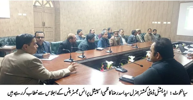 سیالکوٹ ،باغی ٹی وی ( بیوروچیف شاہد ریاض سے) ایڈیشنل ڈپٹی کمشنر سیالکوٹ سید اسد رضا کاظمی کی زیر صدارت اسپیشل پرائس مجسٹریٹس کے اجلاس کا انعقاد کیا گیا، اجلاس میں چاروں تحصیلوں کے اسسٹنٹ کمشنر سمیت تمام اسپیشل پرائس مجسٹریٹس نے شرکت کی۔
