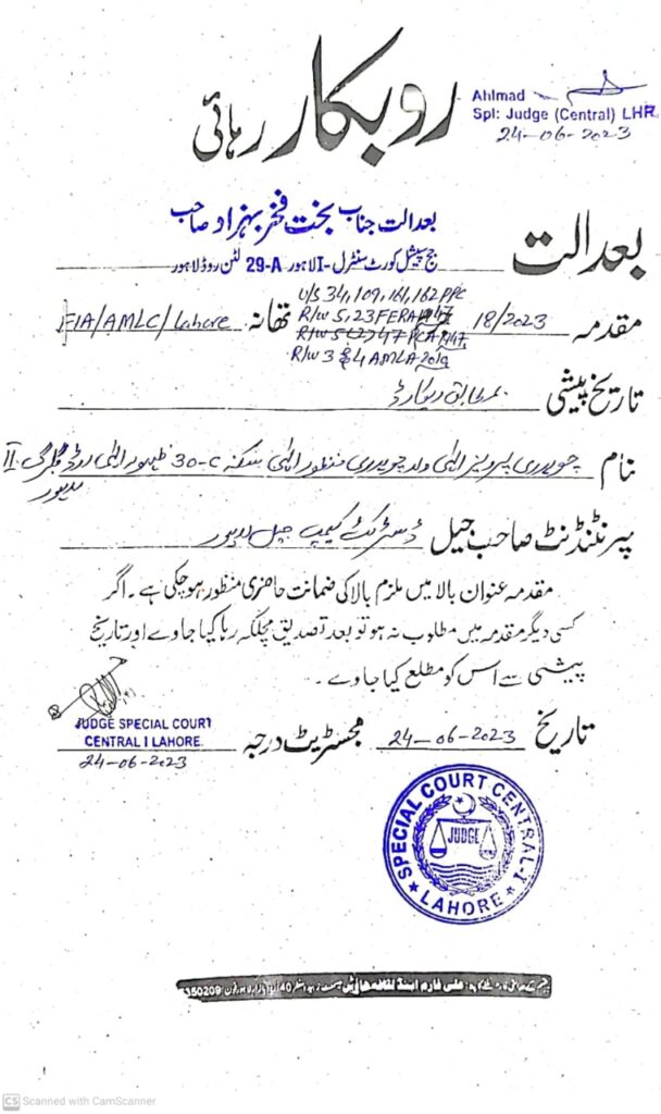 رجسٹرار آفس نے اعتراض برقرار رکھا اوردرخواست خارج کر دی، عدالت نے پی ٹی آئی چیئرمین کے وکیل کو آئینی درخواست دائر کرنے کی ہدایت کی،۔ وکیل اشیاق اے خان نے عدالت میں کہا کہ نیب کی جانب سے 22 جون کا نوٹس موصول ہوا پہلے ملنے والے نوٹس کیخلاف اسلام آباد ہائیکورٹ سے رجوع کیا ،عدالت نے استفسار کیا کہ آپ اسلام آباد کب جانا چاہتے ہیں؟ وکیل نے عدالت میں کہا کہ 4 جولائی کو کیسز لگے ہیں عدالت نے قرار دیا کہ آپ کو آئینی پیٹنشن دائر کرنی چاہیے تھی،عمران خان کے وکیل اشتیاق اے خان نے کہا کہ ہم نے اسی کو آئینی پیٹنشن میں تبدیل کر دیا ہے