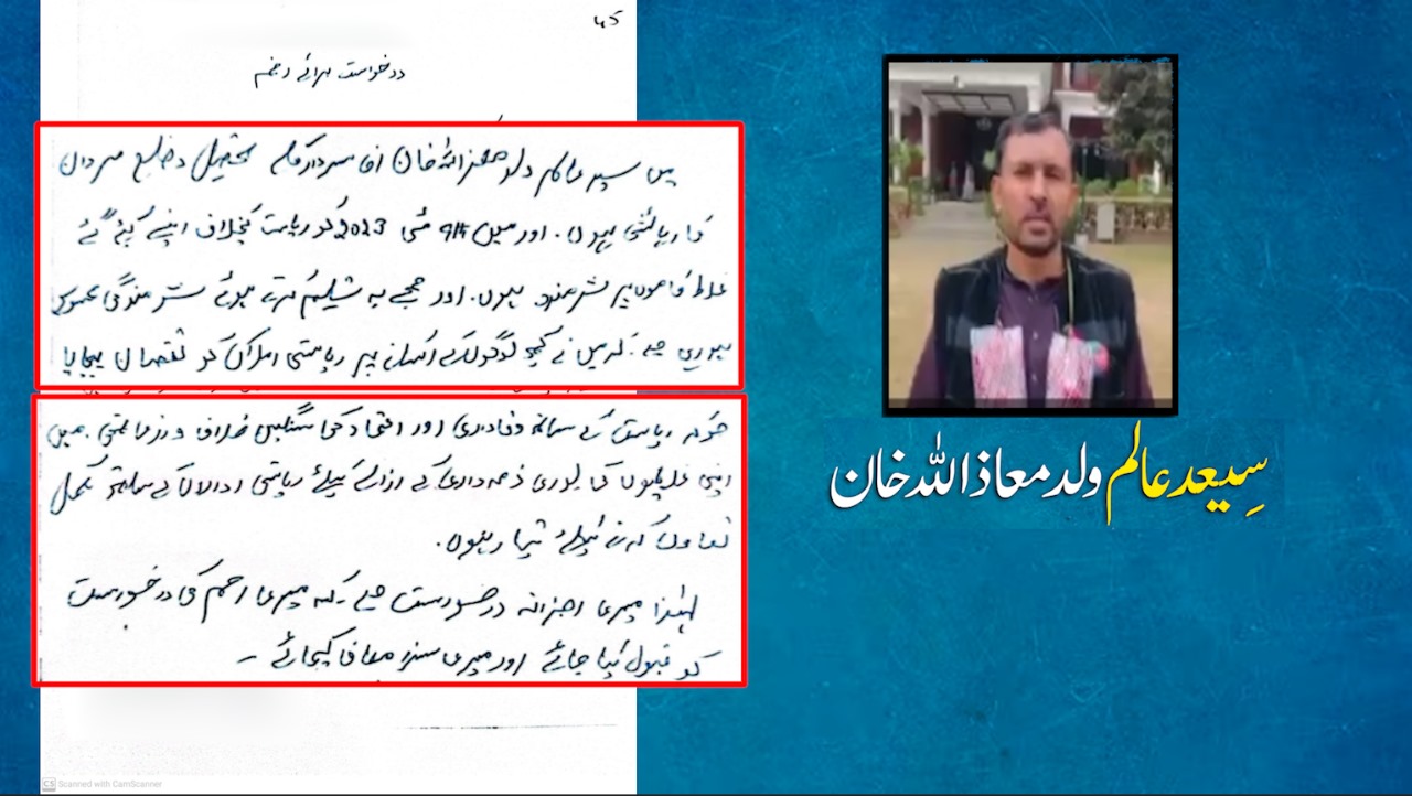 ایک اور مجرم محمد سلیمان ولد سعد غنی نے کہا کہ درخواست کرتا ہوں کہ میری معاملے میں حسن سلوک کیا جائے اور میں ریاست کے خلاف اپنے غلط کاموں پر معذرت خواہ ہوں جو مجھ سے 9 مئی 2023 کو ہوئے مجھے بعض افراد نےگمراہ کیا اور ریاستی املاک کو نقصان پہنچایا، میں اپنی غلطیوں کی پوری ذمہ داری لیتا ہوں ،میں ریاست اور عوام کے اعتماد کو دوبارہ حاصل کرنے کیلئے حکام سے مکمل تعاون کرنے کے لئے تیار ہوں ،لہذا میری رحم کی درخواست پر غور کیا جائے اور سزا معاف کی جائے-