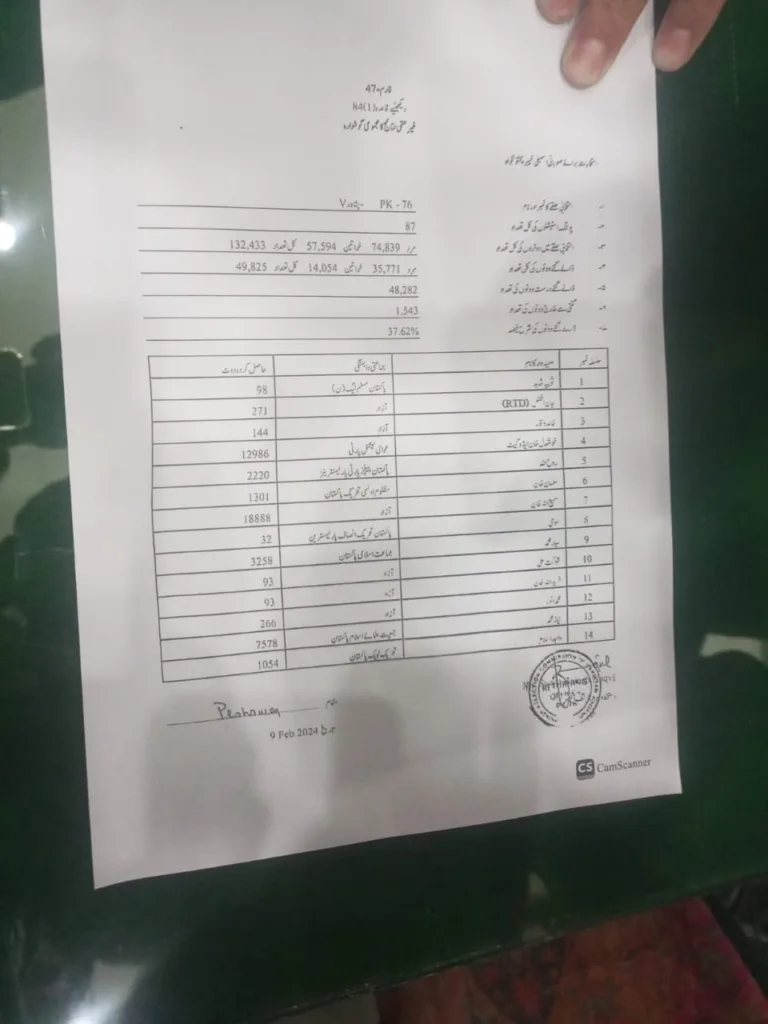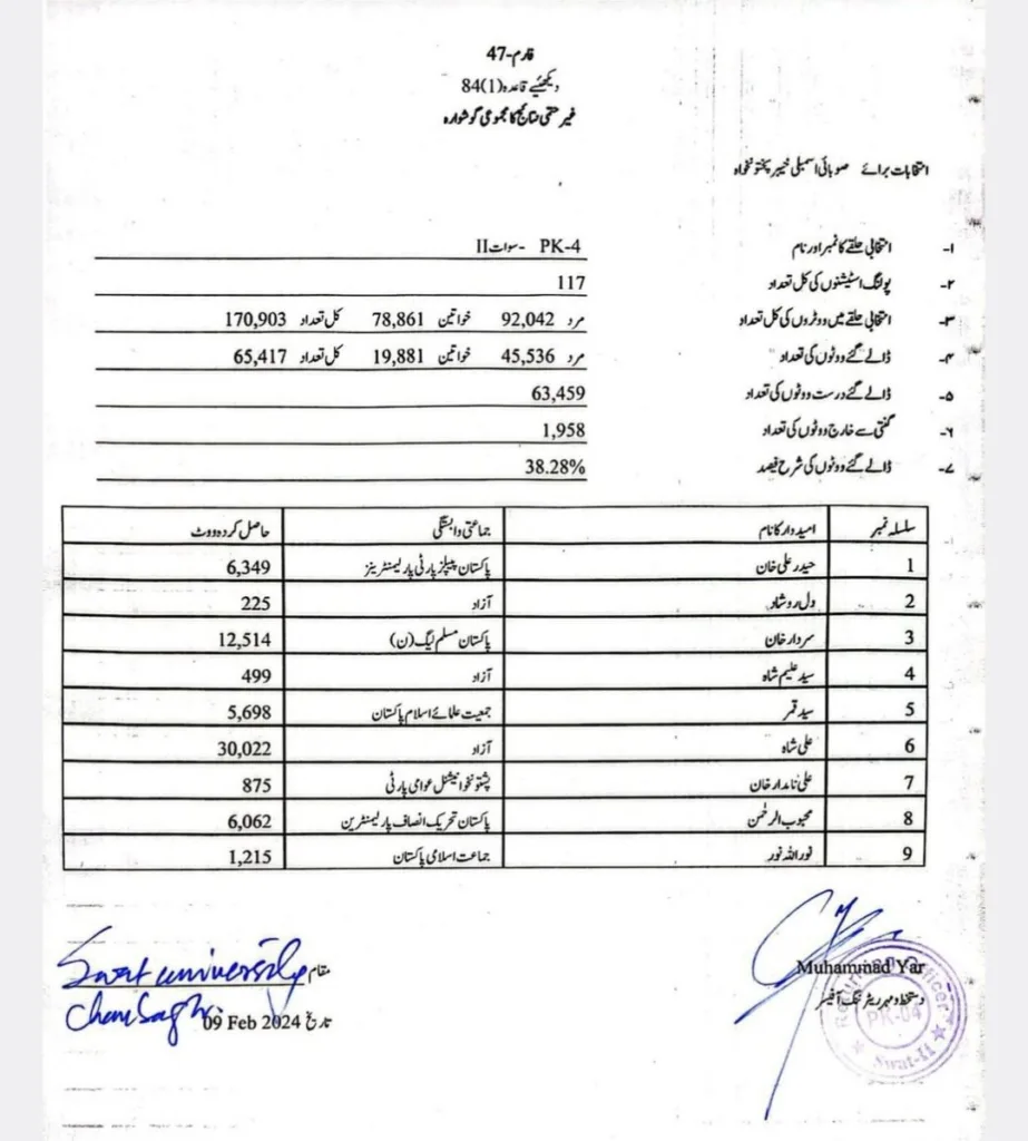 مانسہرہ حلقہ این اے 15 پولنگ اسٹیشن نمبر 56 بی ایچ یو پانو ڈھیری کا غیر حتمی نتیجی، تحریک انصاف کے امیدوار شہزادہ گستاسپ خان 148 ووٹ کے کرپہلے،نواز شریف 100 ووٹ لے کر دوسرے نمبر پر ہیں