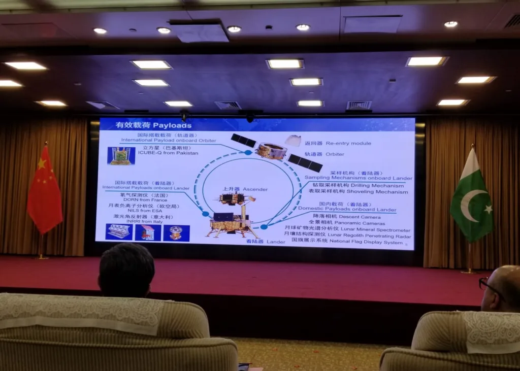 "آئی کیوب قمر”، پاکستان انسٹی ٹیوٹ آف اسپیس ٹیکنالوجی، سپارکو،ایشیا پیسیفک اسپیس کوآپریشن آرگنائزیشن اور شنگھائی جیاو ٹونگ یونیورسٹی کے اشتراک سے تیار کیا گیا ہے، پاکستان کا سیٹلائٹ مشن 3 سے 6 ماہ تک چاند کے اطراف چکر لگائے گا، سیٹلائٹ کی مدد سے چاند کی سطح کی مختلف تصاویر لی جائیں گی،مشن سیٹلائٹ چاند کے مدار پر 5 دن میں پہنچے گا،آئی کیوب قمر کے کامیاب سفر کا آغاز 2022 میں ہوا اور تقریباً 2 سال میں مکمل کیا گیا،پاکستان چاند کے مدار میں سیٹلائٹ بھیجنے والا چھٹا ملک بن گیا،سیٹلائٹ کی تیاری میں مختلف شعبوں کے طلبہ بھی شامل رہے،آئی کیوب سیٹ میں 12 وولٹ کی بیٹری اور 2 سولر پینلز بھی نصب ہیں،آئی کیوب میں کمیونیکیشن کیلئے نظام بھی نصب، ڈیٹا ٹرانسفر ریٹ 1 کلو بائٹ فی سیکنڈ ہوگا،پاکستان کے پاس پہلی بار تحقیق کیلئے اپنے سیٹلائٹ سے لی جانیوالی چاند کی تصاویر ہوں گی،سیٹلائیٹ کی کامیاب آزمائش کے بعد آئی کیوب کیو کو چینگ ای 6 مشن کیساتھ جوڑ دیا گیا،آئی کیوب کیو‘ کی مدد سے تکنیکی ترقی، سائنسی و خلائی تحقیق کے منصوبوں میں آگے بڑھا جاسکے گا