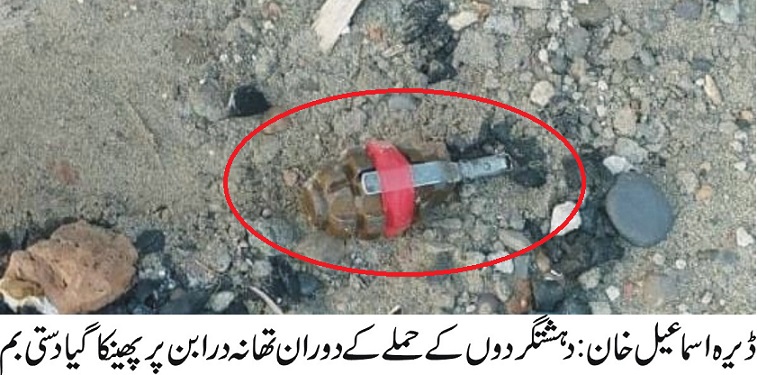 ڈیرہ اسماعیل خان : تھانہ درابن پر دہشتگردوں کا حملہ ،تھانہ پر فائرنگ ، دستی بم کا استعمال،خوش قسمتی بم پھٹ نہ سکا