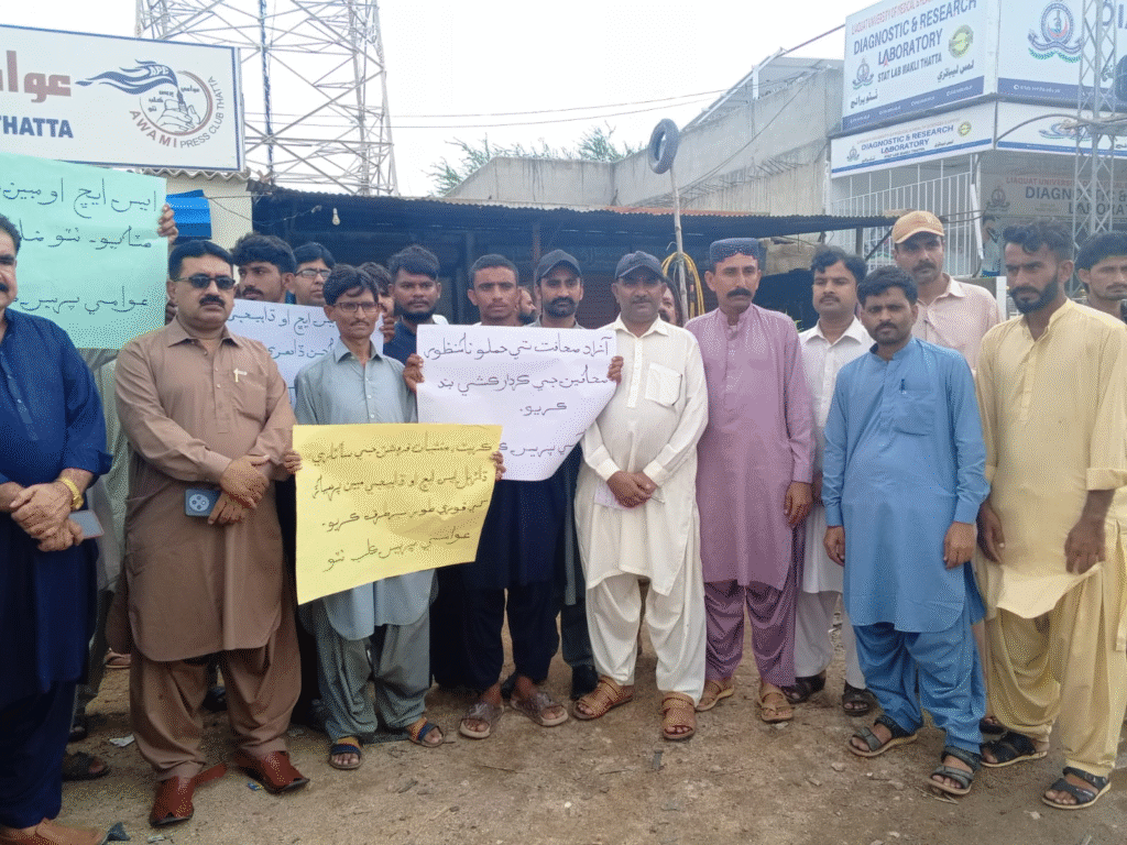 ٹھٹھہ: ایس ایچ او مبین پرھیار ہٹاؤ، ٹھٹھہ بچاؤ،عوامی تحریک شروع