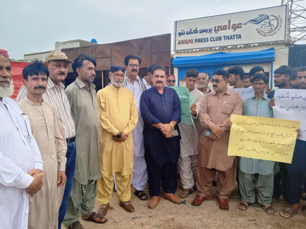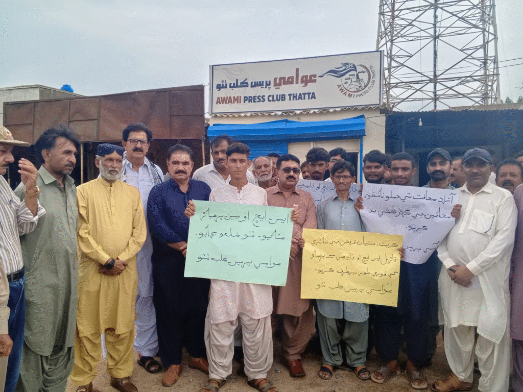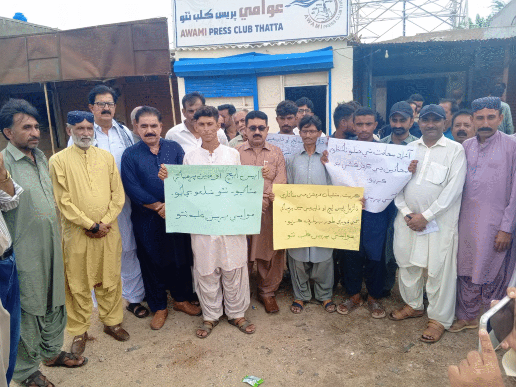 ٹھٹھہ (باغی ٹی وی ،ڈسٹرکٹ رپورٹر)ٹھٹھہ میں "ایس ایچ او مبین پرہیار ہٹاؤ، ٹھٹھہ بچاؤ تحریک” کا باقاعدہ آغاز کر دیا گیا ہے۔ اس سلسلے میں عوامی پریس کلب ٹھٹھہ کے سامنے ایک زبردست احتجاجی مظاہرہ کیا گیا، جس میں صحافیوں، سول سوسائٹی، اور مختلف علاقوں سے آئے متاثرین نے شرکت کی۔ مظاہرین نے ایس ایچ او تھانہ دھابیجی مبین پرھیار کے خلاف شدید نعرے بازی کی اور مطالبہ کیا کہ اسے فوری طور پر برطرف کیا جائے۔