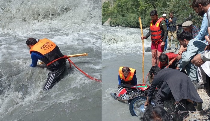 چترال،باغی ٹی وی(نامہ نگارگل حماد فاروقی)اپر چترال سور ریچ سے تعلق رکھنے والے انوارالدین صبح سکول جاتے ہوئے حادثے کا شکار ہوکر موٹرسائیکل سمیت دریا میں جاگرا، ریسکیو1122کو اطلاع ملنے پر ریسکیو1122 تیراک ٹیم اپر چترال دریائے چترال میں مختلف مقامات پر سرچ آپریشن کر رہے ہیں لیکن تاحال انوار الدین کا کوئی سراغ نہ مل سکا،