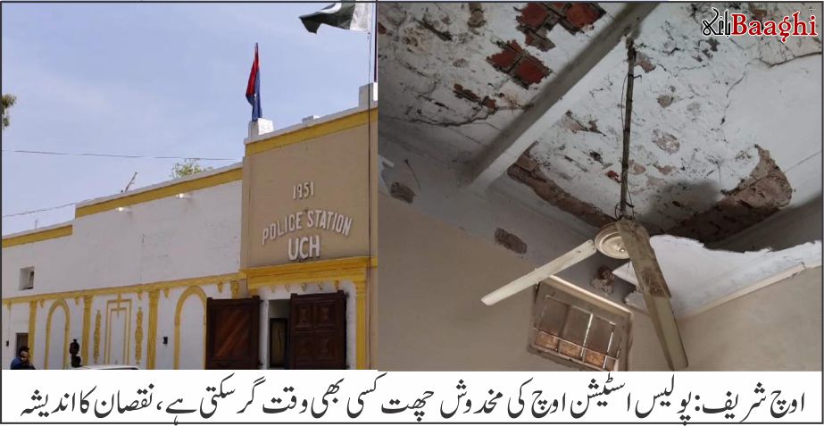 اوچ شریف (باغی ٹی وی,نامہ نگارحبیب خان) اوچ شریف تھانے کی عمارت کی خستہ حالی نے شہریوں اور سیکیورٹی اہلکاروں میں شدید تشویش پیدا کر دی ہے۔ تھانے کی چھت سے پلستر گرنے کے واقعے کے بعد یہ مسئلہ مزید شدت اختیار کر گیا ہے۔