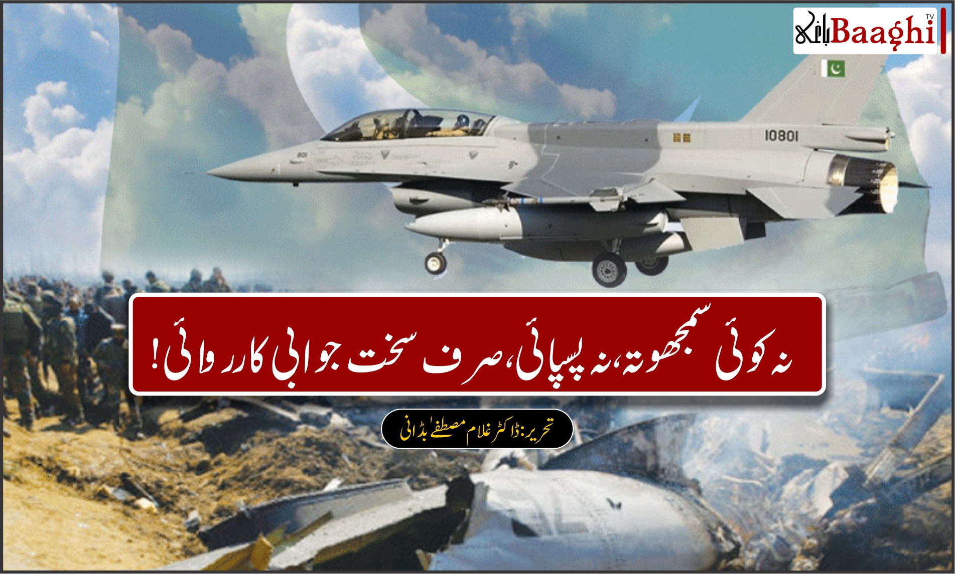 پاکستان کا استحکام اور جنوبی ایشیا میں پائیدار امن کا قیام ہماری اولین ترجیح ہے۔ اس مقصد کے حصول کے لیے اب نہ کسی مصلحت آمیز سمجھوتے کی گنجائش ہے اور نہ ہی کسی قسم کی پسپائی اختیار کی جا سکتی ہے۔ وقت کاتقاضا ا ہے کہ ہم ایک واضح اور دو ٹوک پیغام دیں کہ کسی بھی قسم کی جارحیت کا جواب صرف سخت اور مؤثر جوابی کارروائی سے دیا جائے گا۔ یہ ہماری بقا، ہماری خودمختاری اور ہمارے قومی وقار کا معاملہ ہے۔ اب نہ کوئی سمجھوتہ، نہ کوئی پسپائی، صرف سخت جوابی کارروائی!
