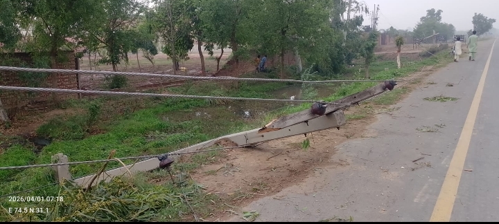 طوفانی بارش سے کھمبے و درخت ٹوٹ کر سڑک پر جا گرے،مالی و جانی نقصان
