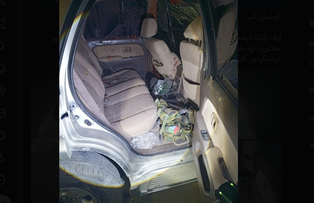 کارروائی کے بعد دہشت گردوں کی گاڑی کی تلاشی لی گئی، جس سے بھاری مقدار میں اسلحہ، گولہ بارود اور دیگر مشتبہ مواد برآمد ہوا۔ برآمد ہونے والے اسلحے کو قبضے میں لے کر مزید تفتیش شروع کر دی گئی ہے۔سکیورٹی حکام کا کہنا ہے کہ علاقے میں سرچ اور کلیئرنس آپریشن جاری ہے تاکہ کسی ممکنہ سہولت کار یا مزید دہشت گرد عناصر کی موجودگی کو یقینی طور پر ختم کیا جا سکے۔ حکام کے مطابق سکیورٹی فورسز بلوچستان میں امن و امان کو خراب کرنے کی ہر کوشش کو ناکام بنانے کے لیے پرعزم ہیں۔