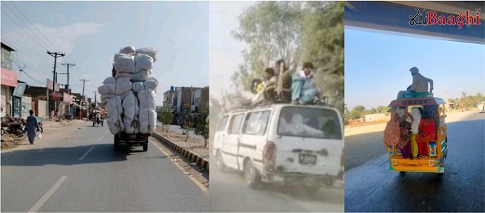 چنگ چی رکشوں میں جگہ کی کمی کی وجہ سے ڈرائیور مسافروں کو نہ صرف اندر بلکہ گاڑی کی چھتوں اور سائیڈوں پر بھی بیٹھنے پر مجبور کر رہے ہیں۔ یہ انتہائی غیر ذمہ دارانہ رویہ مسافروں کی جانوں کو خطرے میں ڈال رہا ہے۔