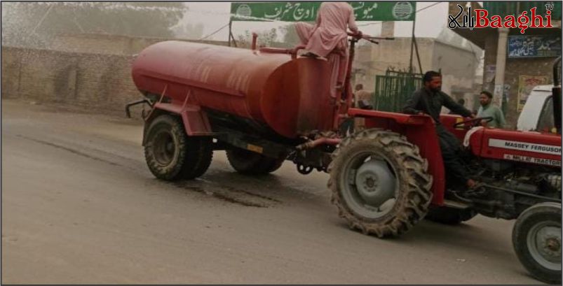 اوچ شریف: سموگ سے نمٹنے کے لیے میونسپل کمیٹی کا سڑکوں پر پانی کا چھڑکاؤ