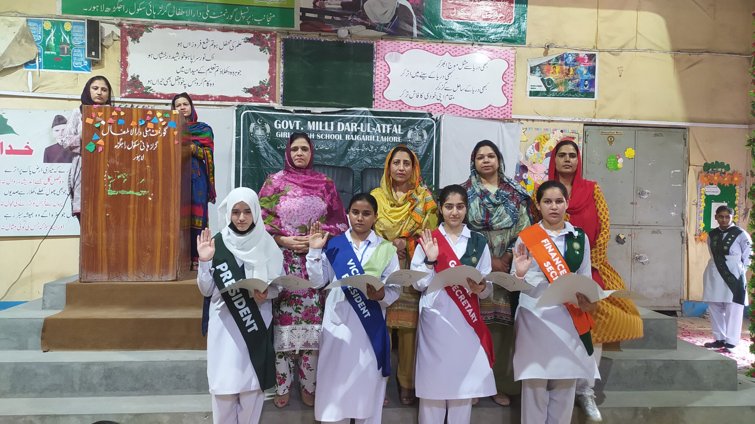 سکول کی پرنسپل ڈاکٹر شوکت اقبال کی زیر نگرانی ہونے والے اس انتخابی عمل میں، طالبات نے بڑھ چڑھ کر حصہ لیا اور شفافیت کے ساتھ ووٹنگ کی۔ انتخابات میں طالبات کی بھرپور دلچسپی اور جوش و خروش نے اس موقع کو یادگار بنا دیا۔ام حبیبہ نے صدر کے عہدے کے لیے اپنی انتخابی مہم کو کامیاب بناتے ہوئے بھاری اکثریت سے فتح حاصل کی۔ ان کے کامیاب انتخاب کے بعد سکول میں ایک حلف برداری کی تقریب کا انعقاد کیا گیا جس میں نو منتخب عہدیداران نے حلف اٹھایا۔ اس تقریب میں سکول کی تمام طالبات نے شرکت کی اور ایک دوسرے کو خوشی کے موقع پر مبارکباد دی۔