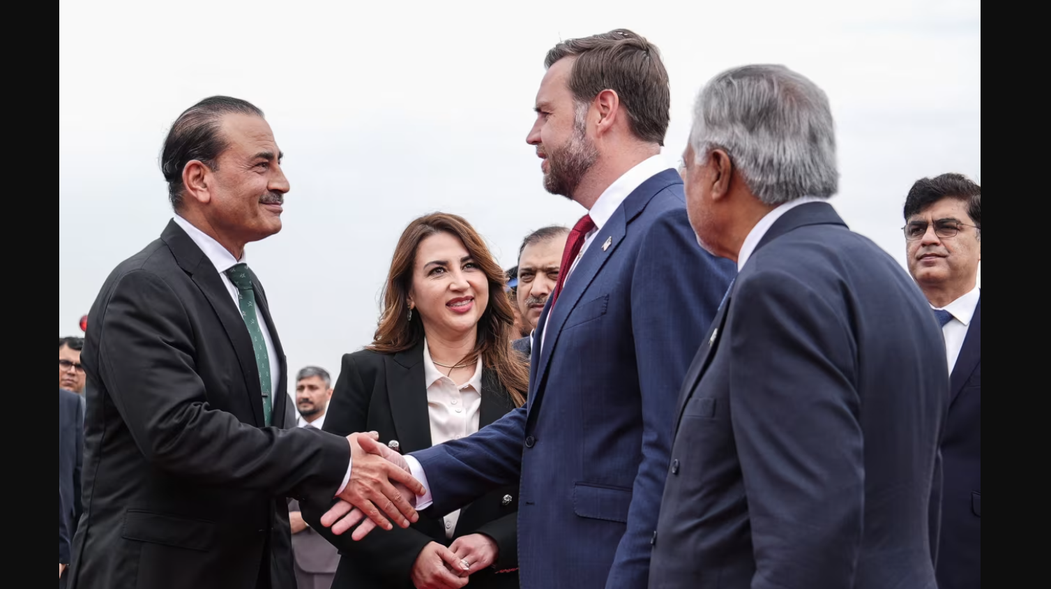 پاکستان کے دارالحکومت میں ہفتے کے روز امریکی نائب صدر کی آمد پر اعلیٰ سطحی استقبال دیکھنے میں آیا، جہاں پاکستان کی مسلح افواج کے سربراہ،فیلڈ مارشل سید عاصم منیر نے خود ایئرپورٹ پر ان کا استقبال کیا۔ آمد کے موقع پر جاری مناظر میں دیکھا گیا کہ دونوں رہنماؤں نے گرمجوشی سے مصافحہ کیا اور مختصر گفتگو بھی کی۔