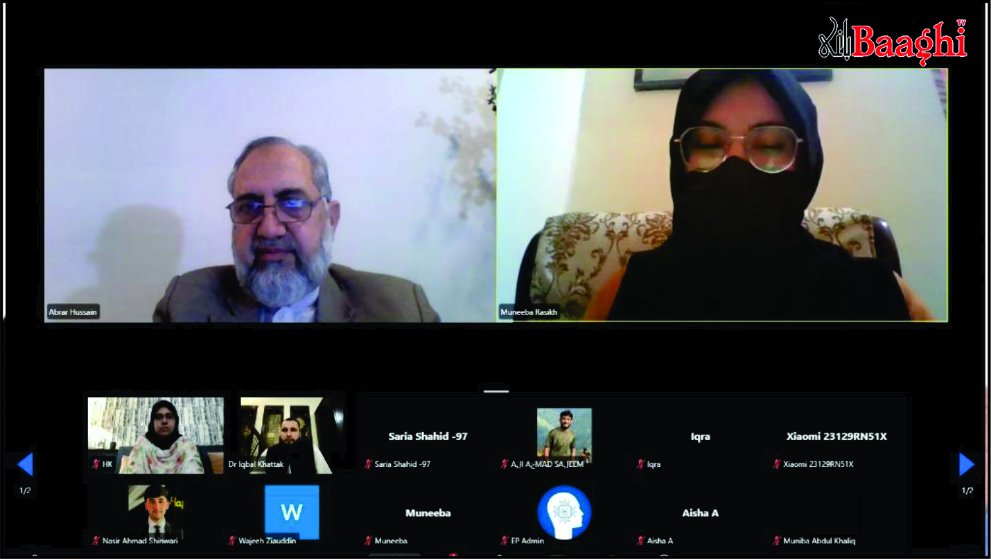 لنڈی کوتل(باغی ٹی وی)پاک افغان یوتھ فورم کے زیر اہتمام ایک ویبینار میں افغانستان کو درپیش پیچیدہ مسائل، بشمول طرزِ حکمرانی، نقل مکانی اور مہاجروں کے مسئلے پر تفصیلی گفتگو کی گئی۔ اس ویبینار کی میزبانی منیبہ راسخ نے کی، جبکہ ممتاز ماہرین بشمول انسٹی ٹیوٹ آف پالیسی اسٹڈیز اسلام آباد کے وائس چیئرمین سابق سفیر سید ابرار حسین، نمل یونیورسٹی کے اسسٹنٹ پروفیسر ساجد اقبال خٹک اور افغان سماجی کارکن ڈاکٹر ضیاء الرحمن نے اس میں شرکت کی۔