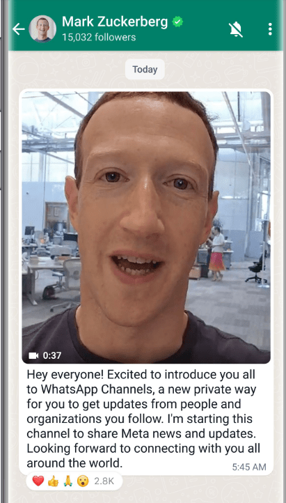 میسجنگ ایپ نے چند ماہ قبل دو ممالک میں یہ نیا فیچر متعارف کروایا تھا، مارک زکربرگ نے اپنے نئے واٹس ایپ چینل پر اس فیچر کے رول آؤٹ کا اعلان کیا ہےنیٹ فلکس جیسی کمپنیاں اس فیچر کا استعمال کرتے ہوئے اپنے چینل کے ذریعے صارفین کو یک طرفہ سیریز دیکھا سکیں گی، چینل کی ہسٹری صرف 30 دن تک محدود ہوگی، جس کے بعد وہ ازخود ڈیلیٹ ہوجائے گی،اگلے چند ہفتوں میں چینلز عالمی سطح پر شروع ہو رہے ہیں، اور ہندوستان سمیت 150 سے زیادہ ممالک میں دستیاب ہوں گے۔